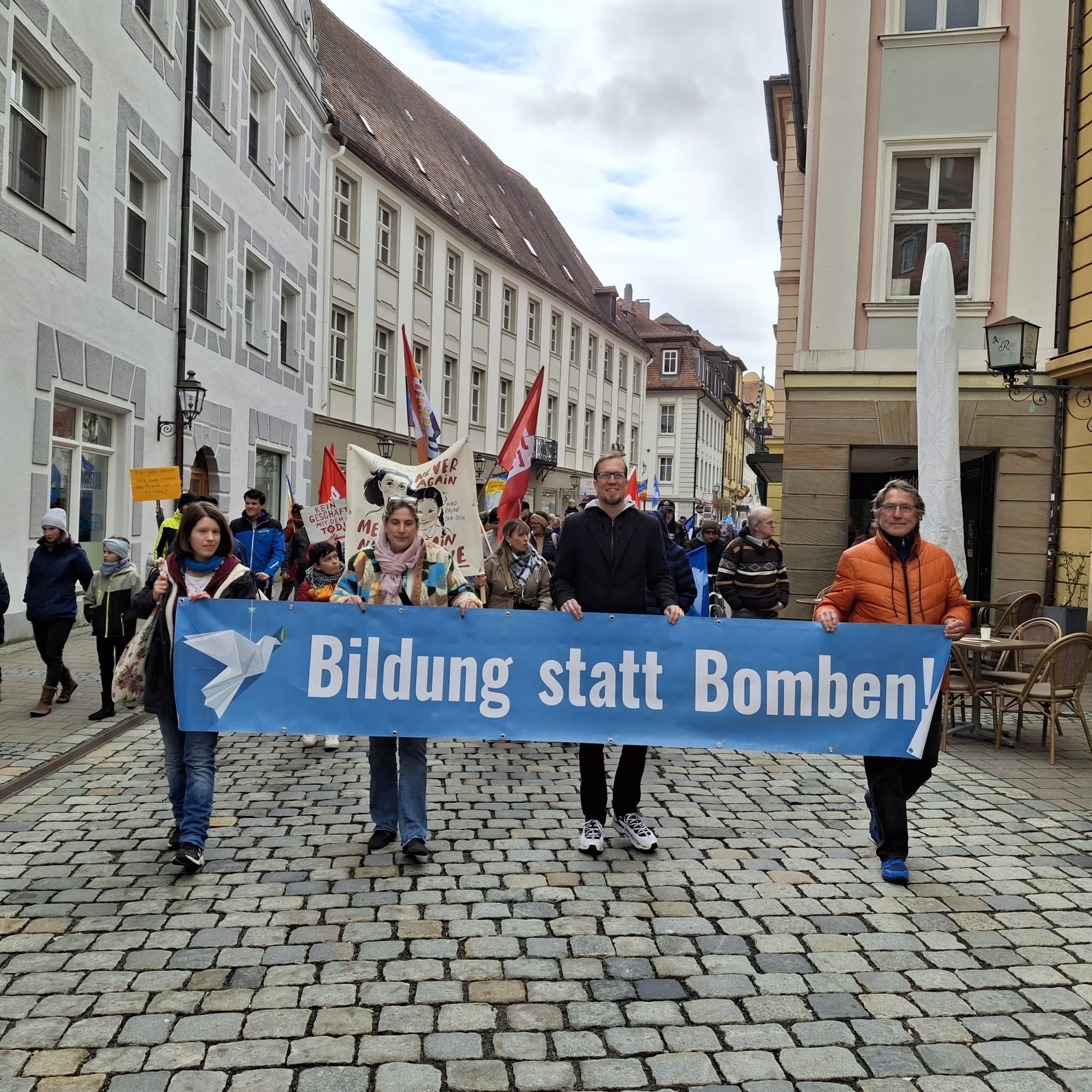 Am Karsamstag demonstrierten mehr als 200 Teilnehmer für „Bildung statt Bomben“, ein voller Erfolg. Organisiert von der BI „Etz langt’s!“ sprachen die Redner gegen Kriegstreiberei, ungezügelte Aufrüstung und für Frieden